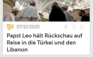 Christine Seuss from Vatican News is presenting a retrospective that only covers Turkey and excludes Lebanon. It is riddled with factual errors. I actually wanted to correct the errors in the article. I will publish it as soon as possible, ideally before Christmas, with help addressing them. Before that, however, I wanted to contact Ms. Seuss so she can respond directly to the publication of the article and the accompanying television program, as she sees fit. That's why the page is password-protected. I will write to Ms. Seuss in the next few days.
