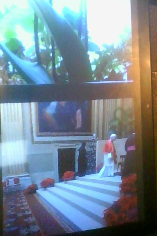 e prende posto sul trono. O meglio: si siede sulla santa sedia.