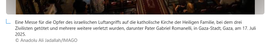 Es geht um ein kleines Kirchlein in Gaza, in dem mehre Zivilisten ermurdet worden. Natürlich erst nachdem