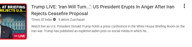 Beobachte live wie USPresident Donald Trump eine Pressekonferenz über den Irankrieg abhält. Trump hat einen mit Schimpfwörtern gespickten Beitrag in den sozialen Medien veröffentlicht.. in welchem er die ....