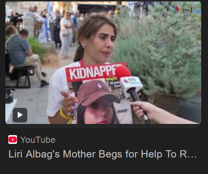 Und zwar mit diesem ein Bild aus besseren Zeiten Sie umarmt ihre kleine Schwester. Beide scheinen glüclich zu sein. Bis am 7,10.2023 paläsinensische Freischärler bei Erez Crossing die Israelischen Linien durchbrochen hatten. Sie nahmen Karina als Geisel. In dem Film bat Sasha : Ich bitte jeden sich für die Rückkehr der Geiseln einzusetzen. aus dem Kopf zitiert. Denn seit sich sich die Lage im Libanon drch den Überfall von Benny erschärft hatte, ist dieser Film verschwunden. Im wird mit de Schicksal der Geisel mi folgendem Film geworben.
