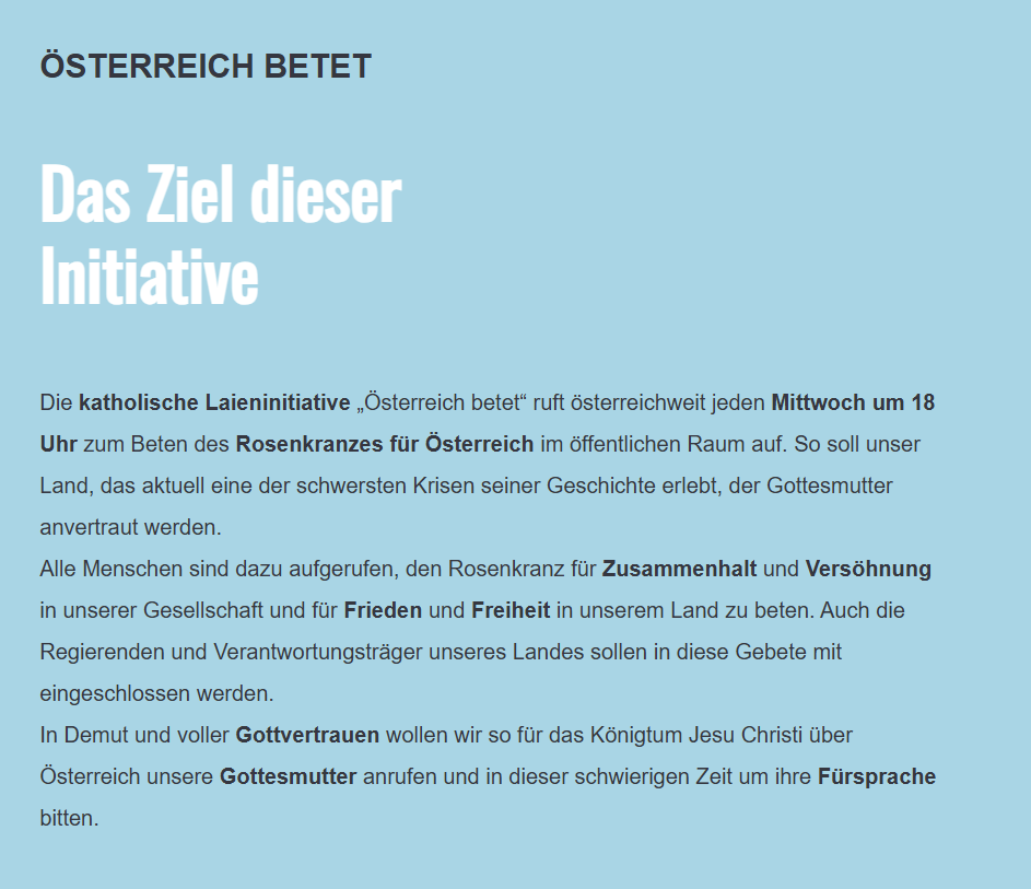 Diekatholische Laieninitiatve " ÖSterreic betetruft Östereichweit jeden dienstag um 18. uhr zum Betendes